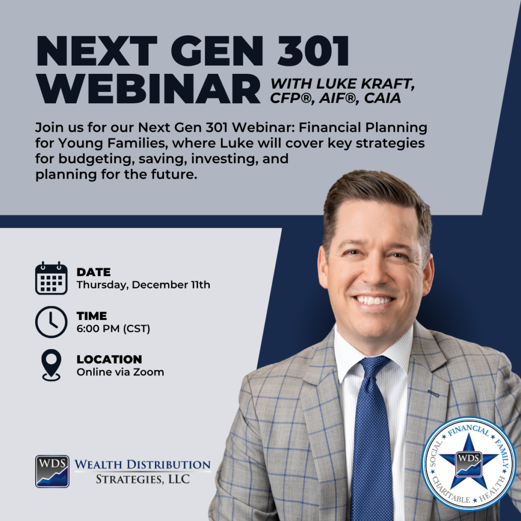 We invite you to attend our Next Gen 301 Webinar: Financial Planning for Young Families. This session, led by Luke Kraft, will cover essential strategies for budgeting, saving, investing, and planning for the future.