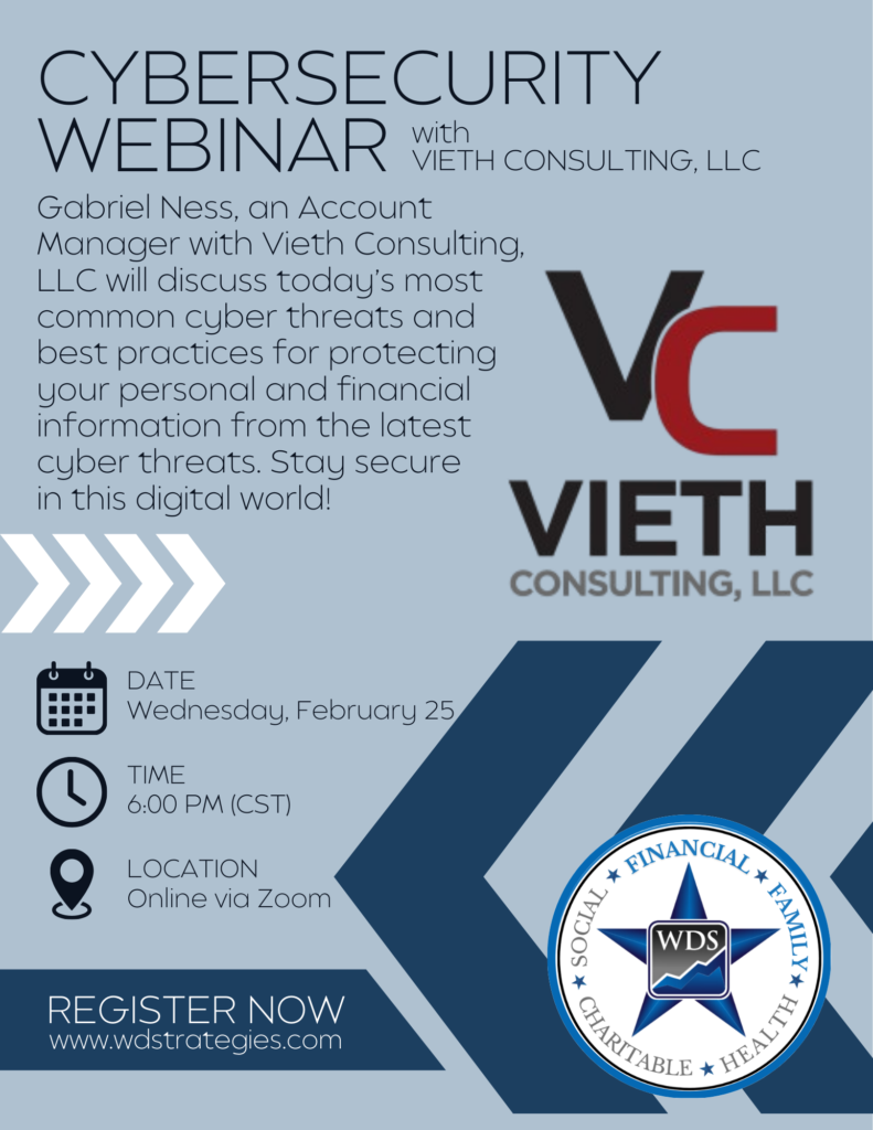 Join us for an informative cybersecurity webinar featuring Gabriel Ness of Vieth Consulting, LLC. Gabriel will share best practices, essential cybersecurity knowledge, and real-world tips to help you protect your personal and financial information, recognize common threats, and navigate today’s digital world with confidence and peace of mind.