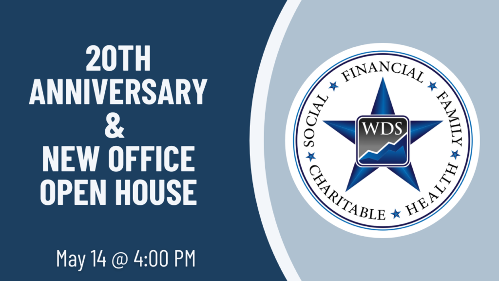 - 20th Anniversary Celebration & New Office Open HouseWe invite you to join us for our 20th Anniversary Celebration & New Office Open House! Stop by, visit our new space, connect with our team, and celebrate this milestone with us. Wealth Distribution Strategies, LLC began its journey in the fall of 2006 when Al Winsand founded the firm… Read more: 20th Anniversary Celebration & New Office Open House